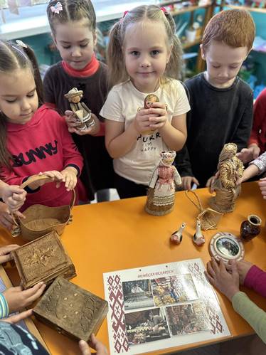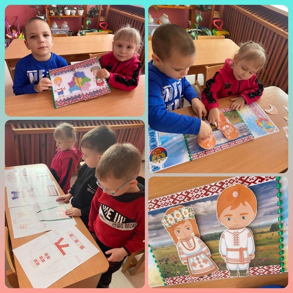 Воспитанники знакомятся с особенностями белорусского народного костюма. Рассматривают плакаты и играют в дидактическую игру «Народнае адзенне», которая была изготовлена с данной целью.